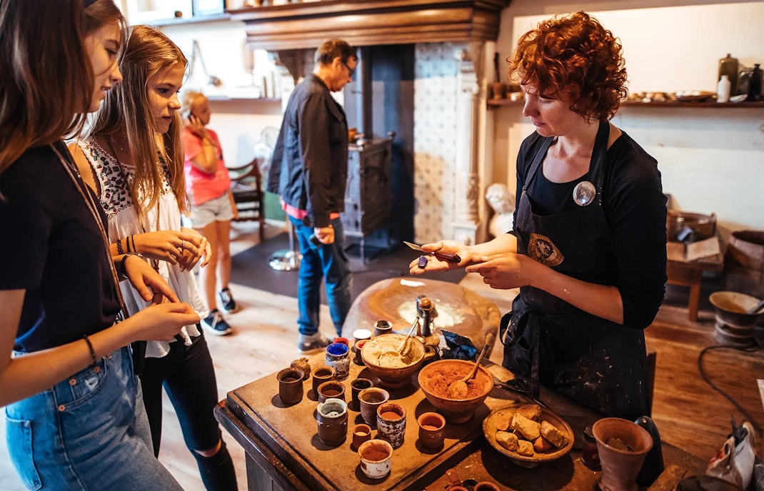 - Erhalten Sie einen Einblick in seinen künstlerischen Prozess: Sehen Sie sich täglich Vorführungen von Maltechniken und Radierungen aus dem 17. Jahrhundert an, z.B. wie Pigmente aus Rohstoffen hergestellt wurden und wie eine Radierung auf einer antiken Presse gedruckt wurde, ähnlich der, die Rembrandt selbst benutzte.