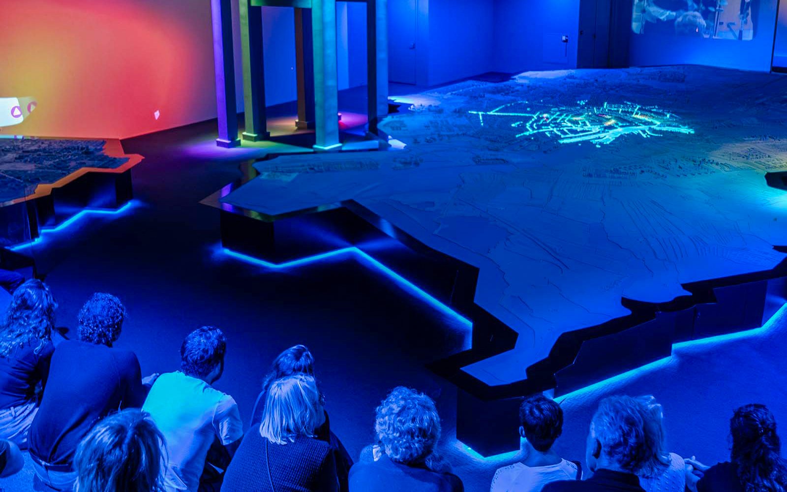 L'exposition est installée dans la Zuiveringshal Oost, un bâtiment industriel néo-Renaissance situé dans le parc culturel de Westergas. Construite à l'origine comme une installation de purification du gaz de charbon, la structure présente de hauts plafonds, des façades en briques et des espaces intérieurs ouverts, idéaux pour des installations à grande échelle. À l'intérieur, la disposition est délibérément ouverte et sans marches, ce qui permet aux visiteurs de se déplacer librement autour de la maquette et des objets exposés. Le contraste entre l'architecture historique et la conception multimédia moderne renforce le thème d'une ville en constante évolution tout en respectant ses fondations.