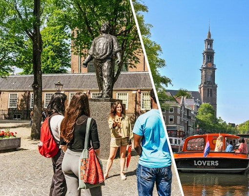 Billets pour la visite à pied d'Anne Frank + 1 heure de croisière sur les canaux | 9h30 à 17 h | 1 h 30 à 2 heures | Guide parlant anglais, français ou allemand | Musée juif, Synagogue portugaise, Beursplein 5, ou De Waag | Réserver |
