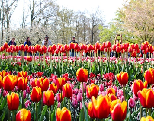 De beste tijd om tulpen in Amsterdam te zien is van half april tot half mei, wanneer ze op hun mooist in bloei staan. Het seizoen begint halverwege maart, maar tulpen staan meestal pas halverwege april in volle bloei. Dit is met gemak het hoogtepunt van het lenteseizoen en de dagen zijn helder en zonnig, perfect om te genieten van de bloeiende tulpen.